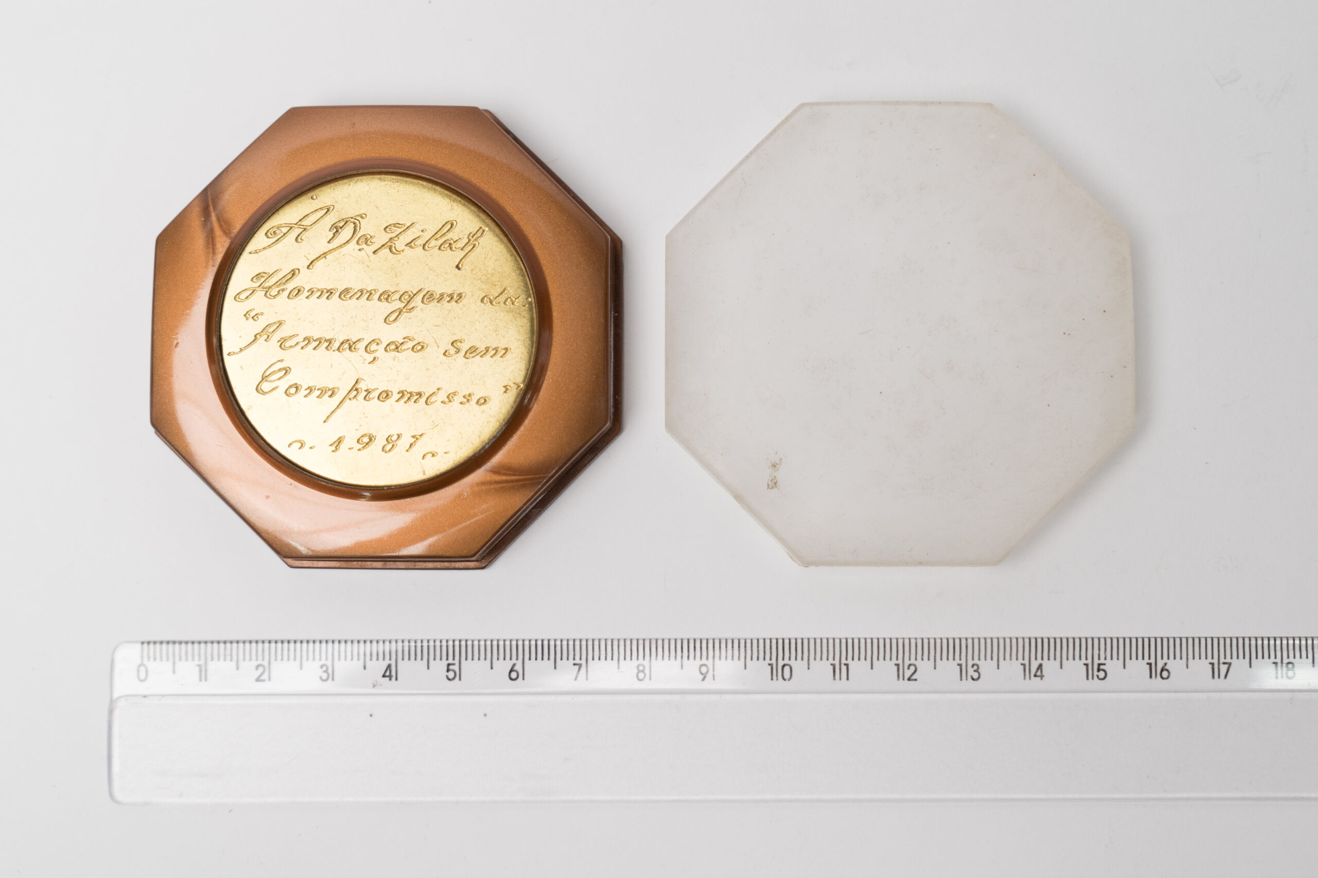 Placa comemorativaadminmarço 4, 2025 Documento 33-CDV07166 Baixar MetadadosIdentificação do objetoPlaca comemorativaIdentificação do ObjetoObjeto Comemorativo > Placa ComemorativaDescriçãoPlaca octogonal em madeira e metal com tampa acrílica com o seguinte dizer: A Da. Zilah homenagem da "Armação sem compromisso" 1987.Ano do Objeto1987Tipo de materialAcrílico | Madeira | MetalEstado de Conservação do ObjetoRegularCidadeVisconde do Rio BrancoMesorregiãoZona da Mata